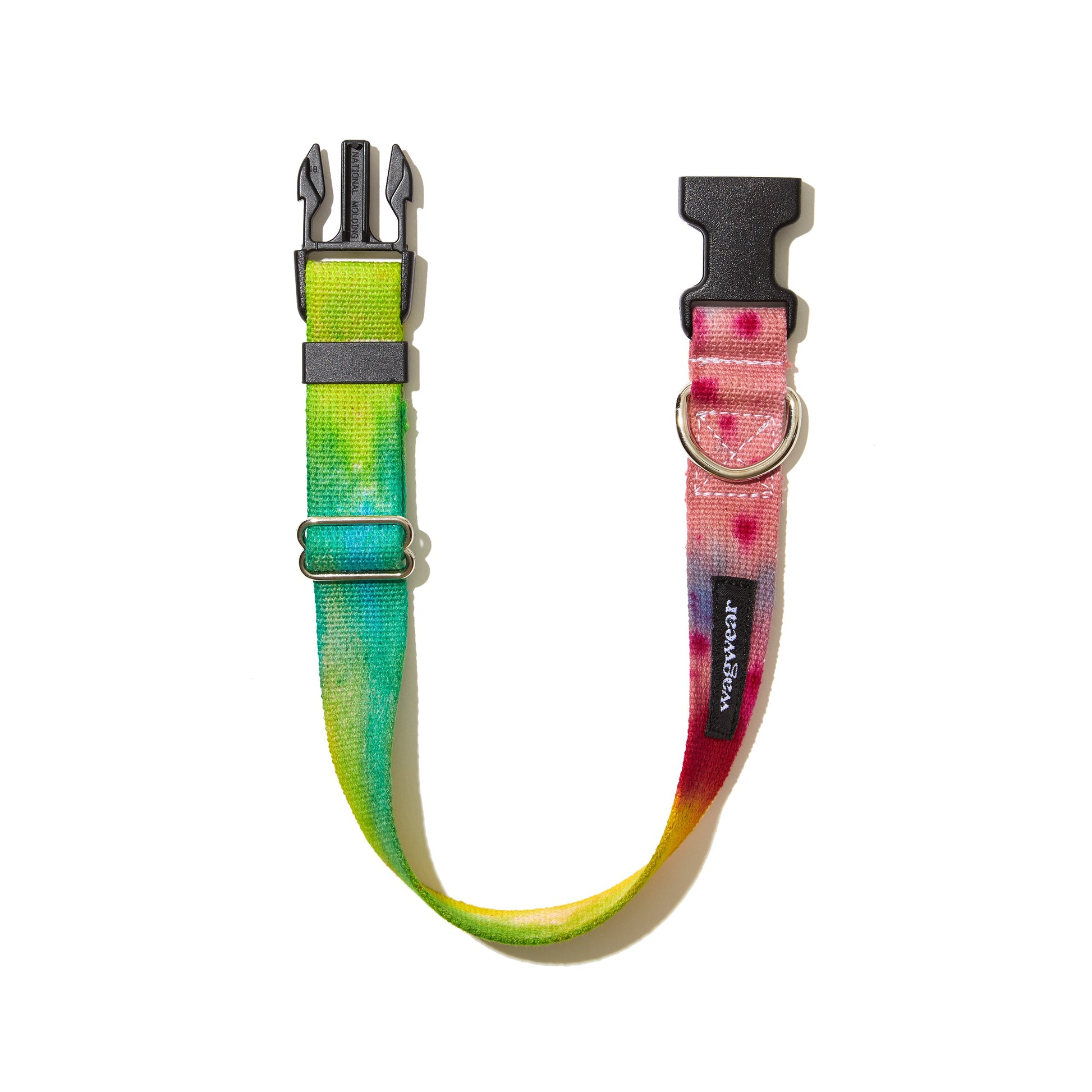 TIE DYE FOR! Wagwear's 100% cotton side-release collar has been tied and dyed in rainbow colors. Featuring a nylon snap buckle with nickel slider for maximum adjustability.