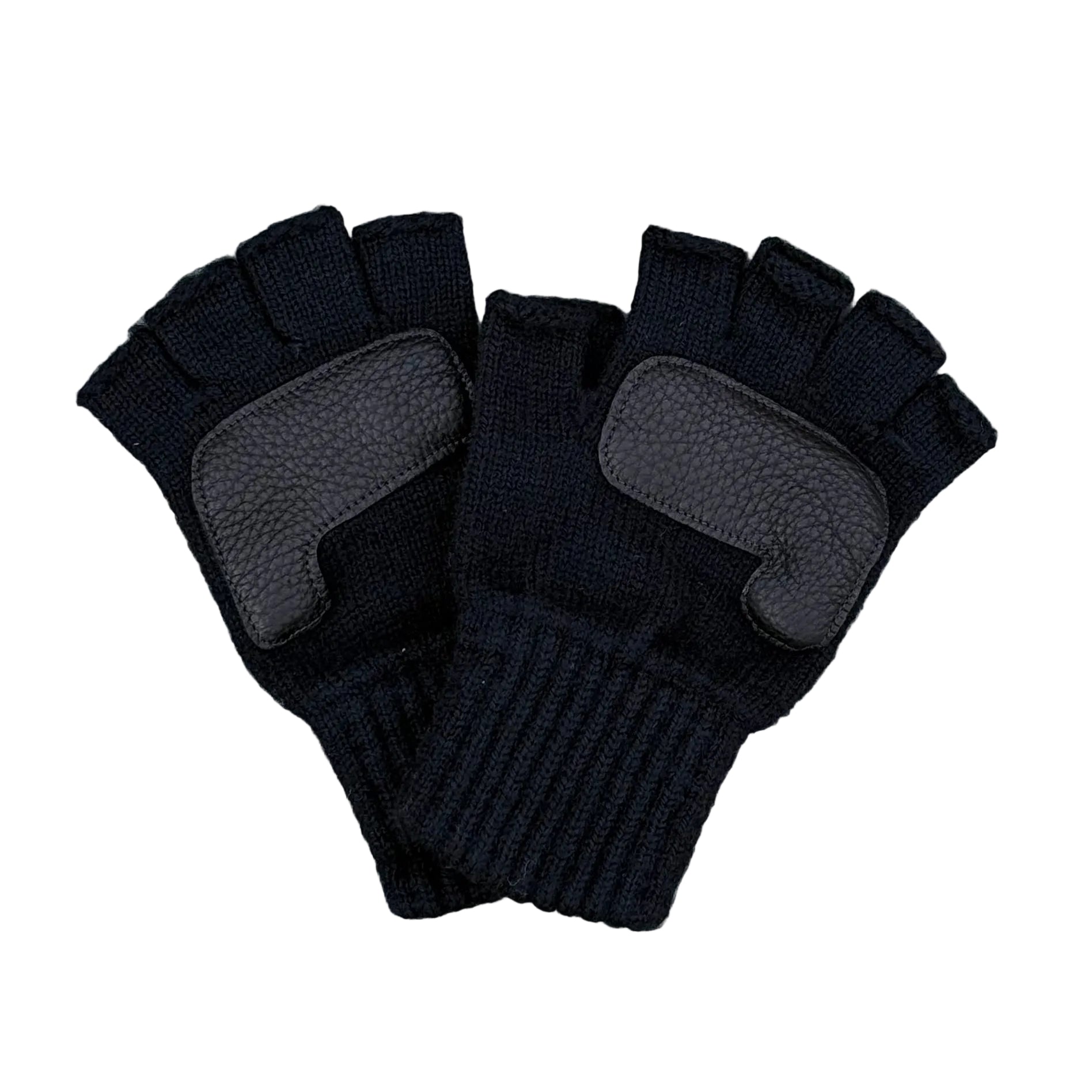 Fingerless Glove with Deerskin - Black with Black