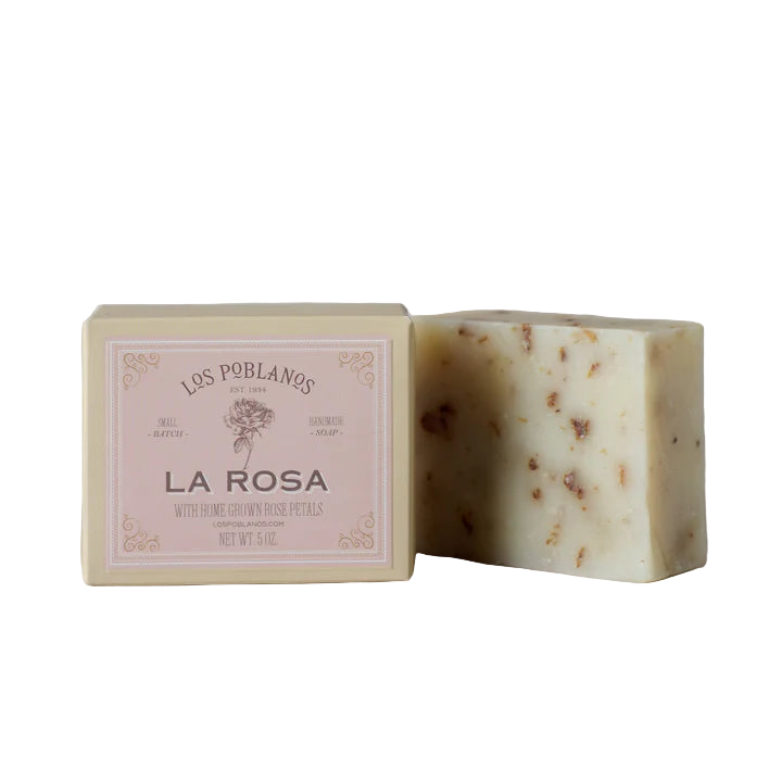 Los Poblanos' iconic rose garden provides the delicate petals that infuse La Rosa Bar Soap with its signature scent. With a base of all-natural ingredients including cocoa butter and beeswax, this soap will leave your hands feeling clean, soothed and delightfully fragranced.