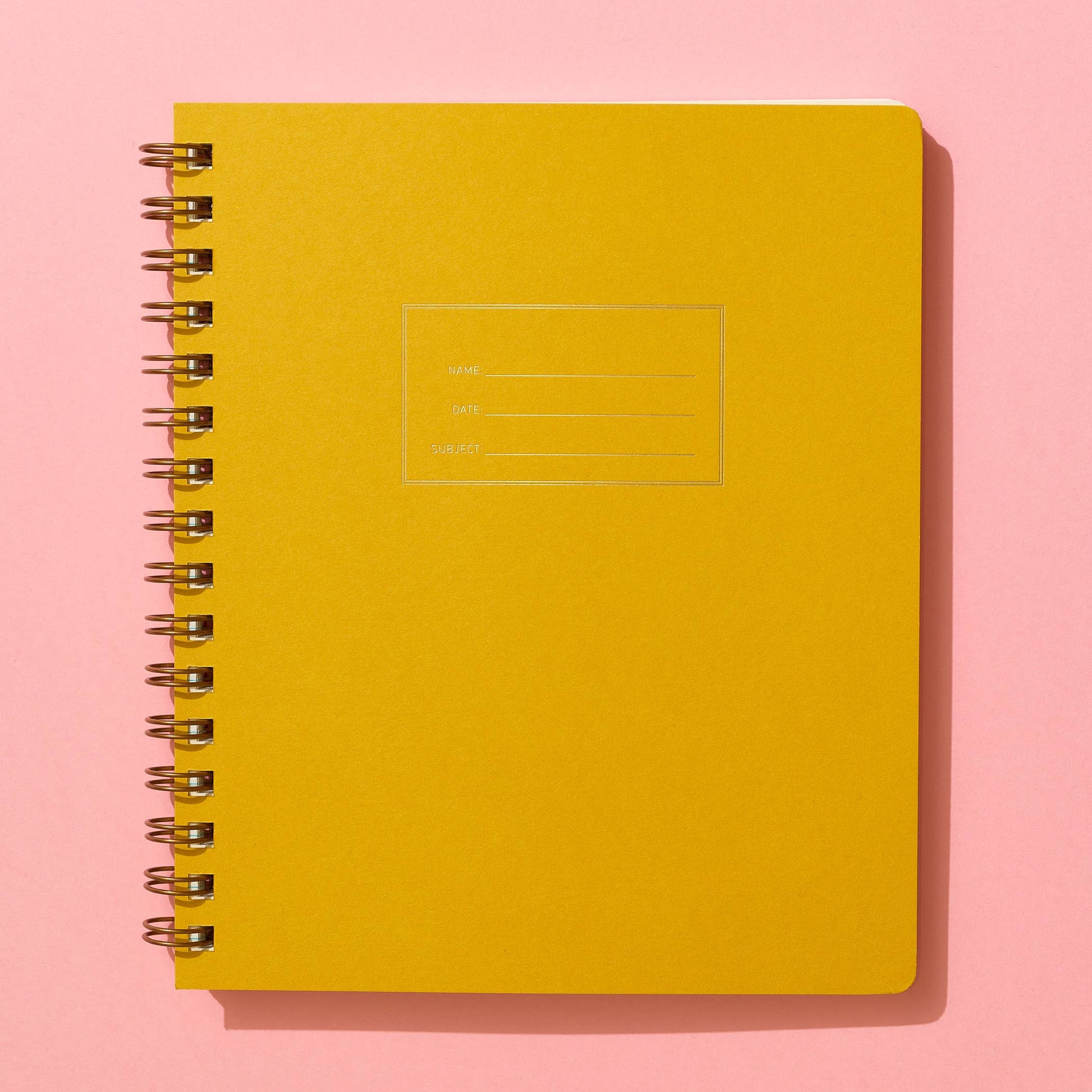 • Mustard cover with gold foil Name, Date, and Subject lines keep you organized and ready to conquer