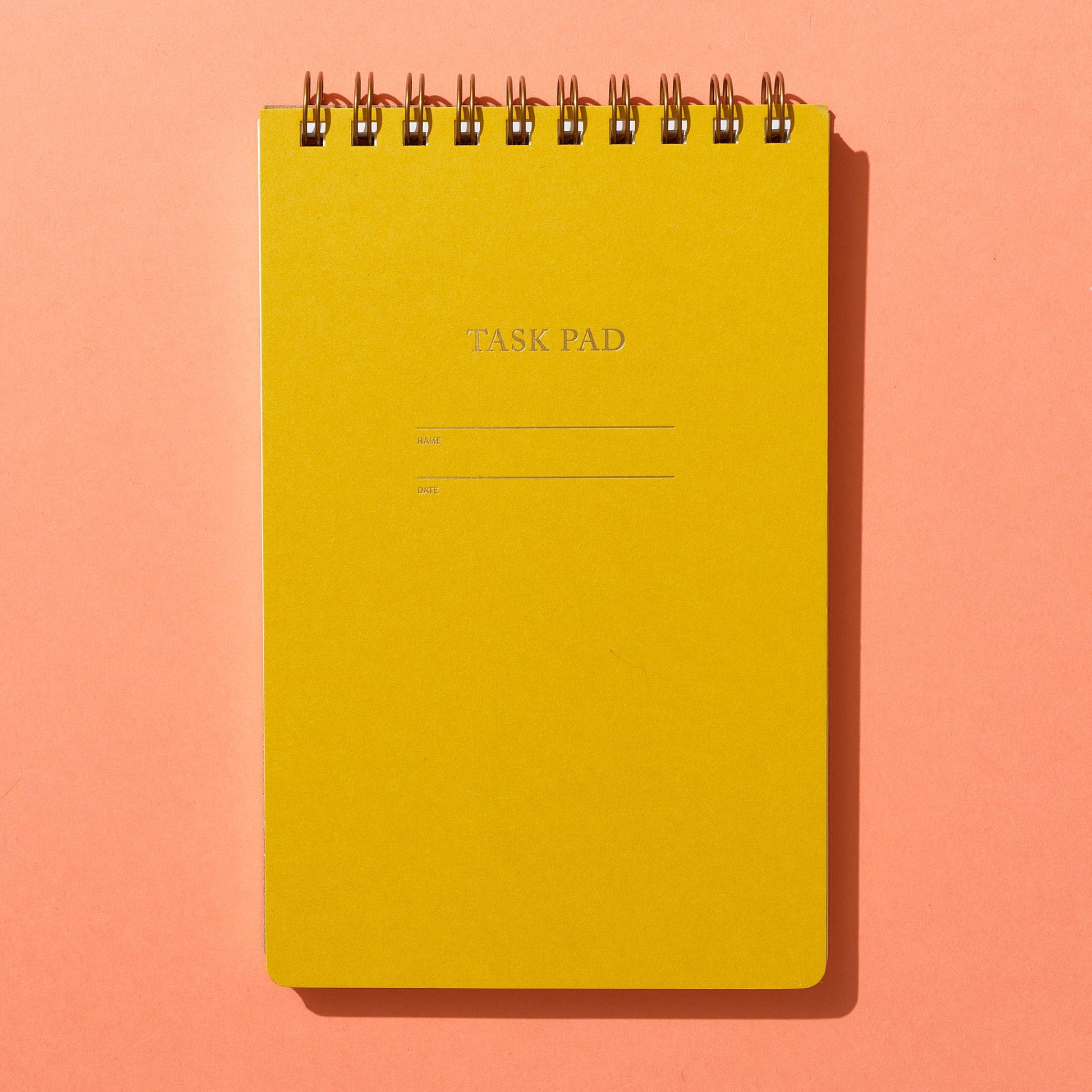 The Task Pad, the essential list notepad. With a letterpressed cover and beautiful interior pages, this lined rule notebook has checkboxes on each line allowing you to keep your lists all together.
