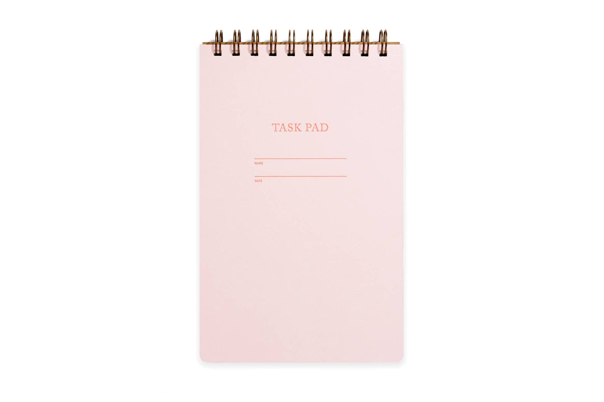 The Task Pad, the essential list notepad. With a letterpressed cover and beautiful interior pages, this lined rule notebook has checkboxes on each line allowing you to keep your lists all together.